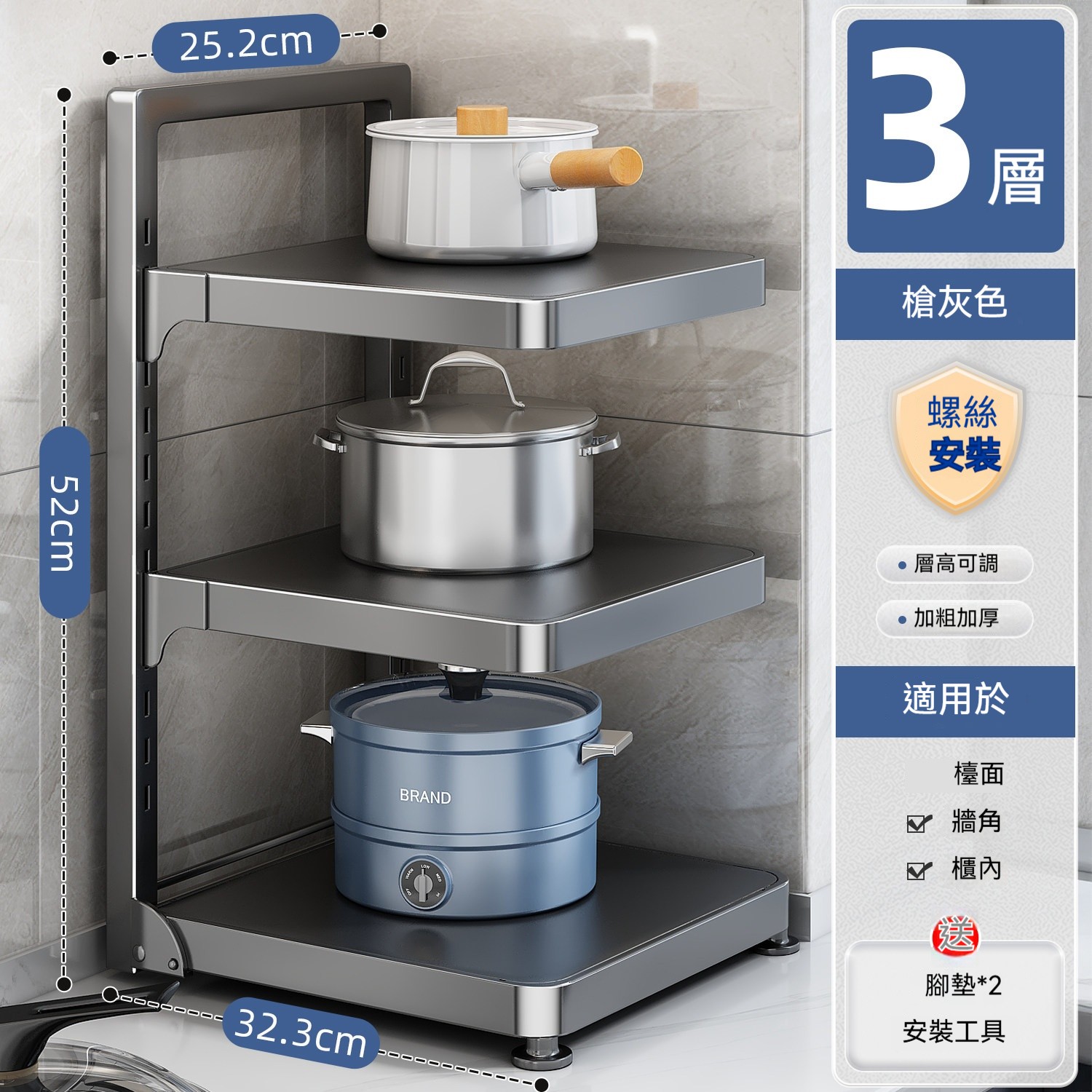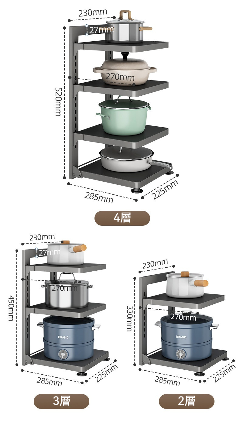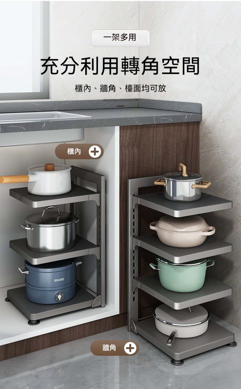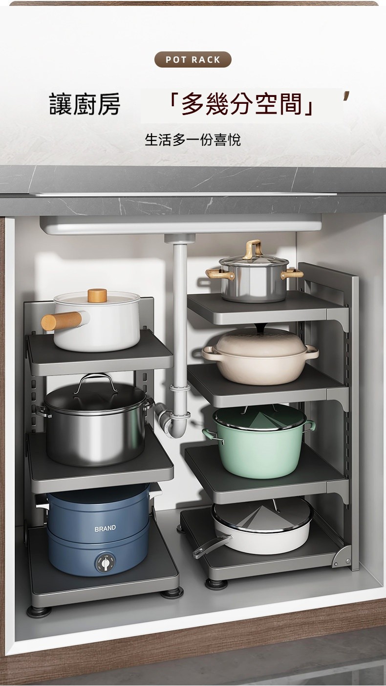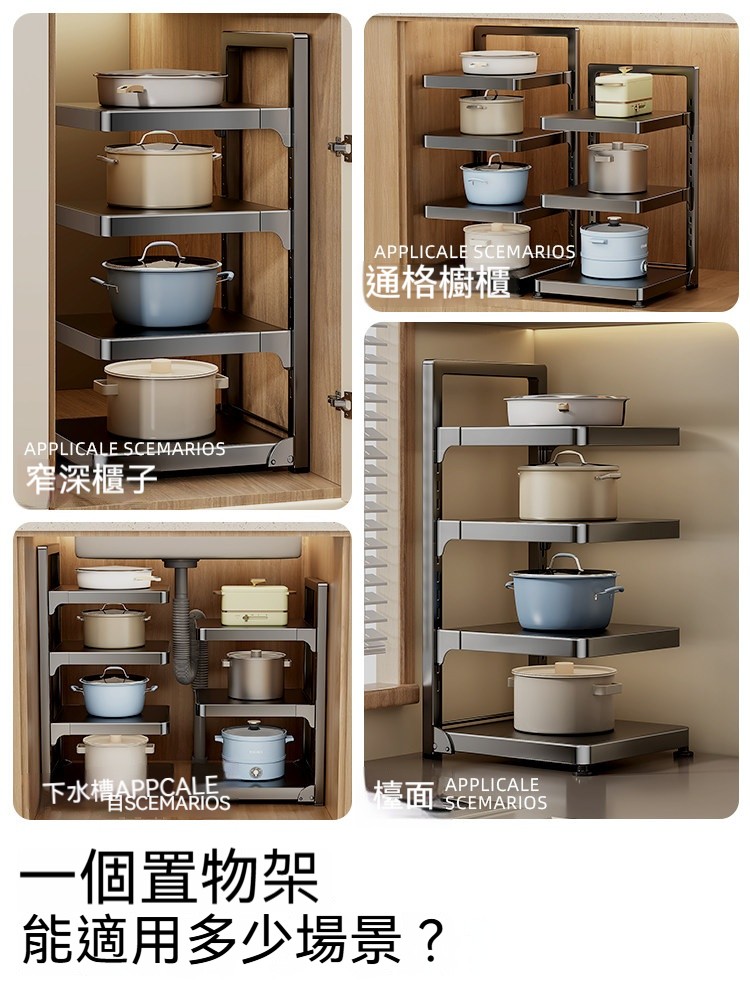 ✨鍋子亂堆找不到✨?✨3層可調收納架幫你一次整理乾淨!✨✨